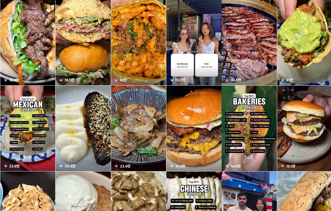 벨리의 마케팅 엔진은 숏폼 콘텐츠입니다. '맛집 소개'는 세계 어디에서나 많은 사람들에게 소비되는 콘텐츠 주제입니다. '맛집'이라는 주제와 '랭킹', '베스트', '로컬' 등의 조합은 나름 검증된 바이럴 공식이라고 볼 수 있죠.
