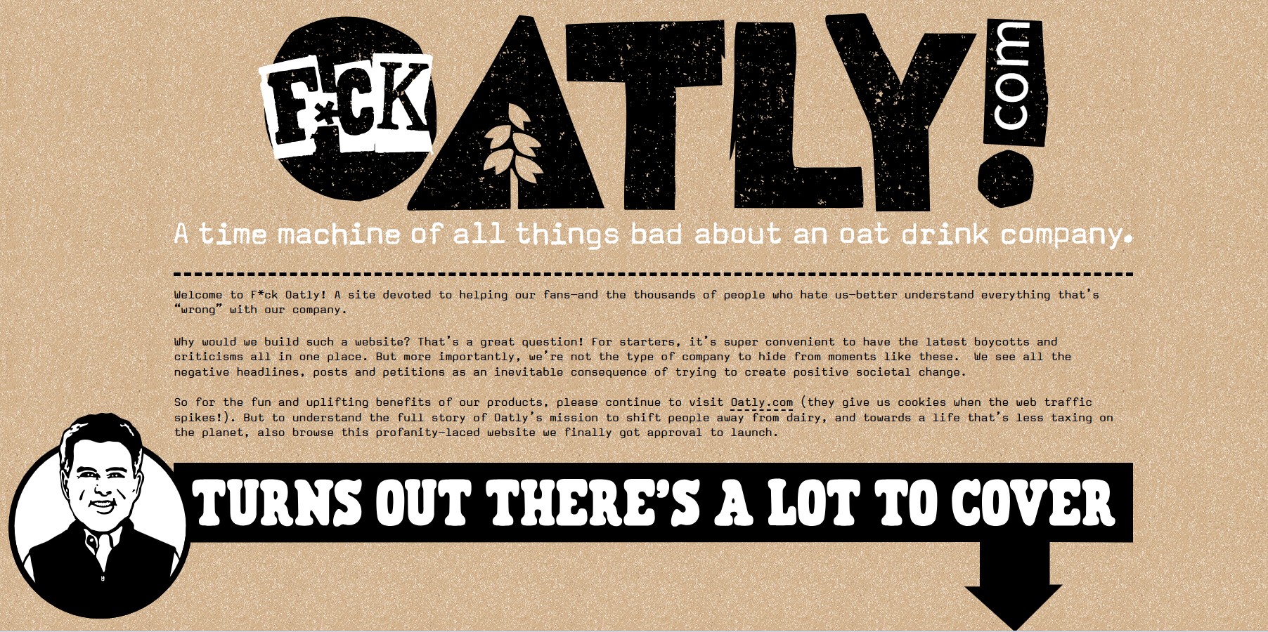 κ·λ¦¬ μλ£ λΈλλμΈ μ€ν리(OATLY)λ μμ λ³λμ μΉμ¬μ΄νΈ(μ¬μ§μ΄ κ·Έ μΉμ¬μ΄νΈ μ΄λ¦μ 'μΏ λ¨Ήμ΄λΌ μ€ν리!'μ λλ€.)λ₯Ό λ§λ€μ΄ λΈλλλ₯Ό λΉλνλ μ¬λλ€μ λͺ©μ리λ₯Ό λͺ¨μΌκ³ , μ΄μ λν λΈλλμ 곡μ μ μ₯μ λ°νλλ€.